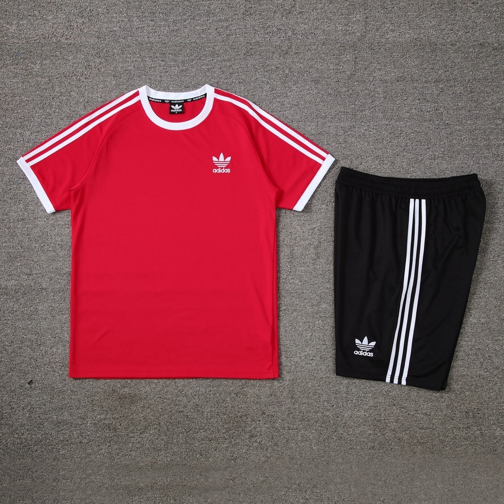 Conjunto Casual Adidas Icon - Vermelho e Preto / Listras Brancas